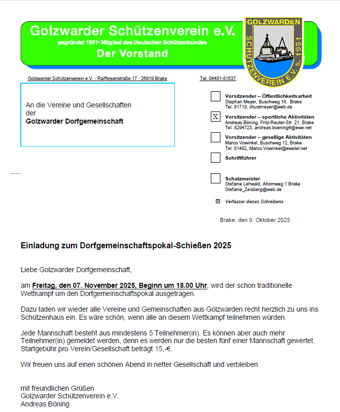 Das Pfingstbaumsetzen 2025 war auch in diesem Jahr wieder ein fester Termin im Golzwarder Kalender – und wurde zu einer rundum gelungenen Veranstaltung. Zwar hatte die Zeitung zunächst ein falsches Foto veröffentlicht, doch der Fehler wurde schnell erkannt und berichtigt.