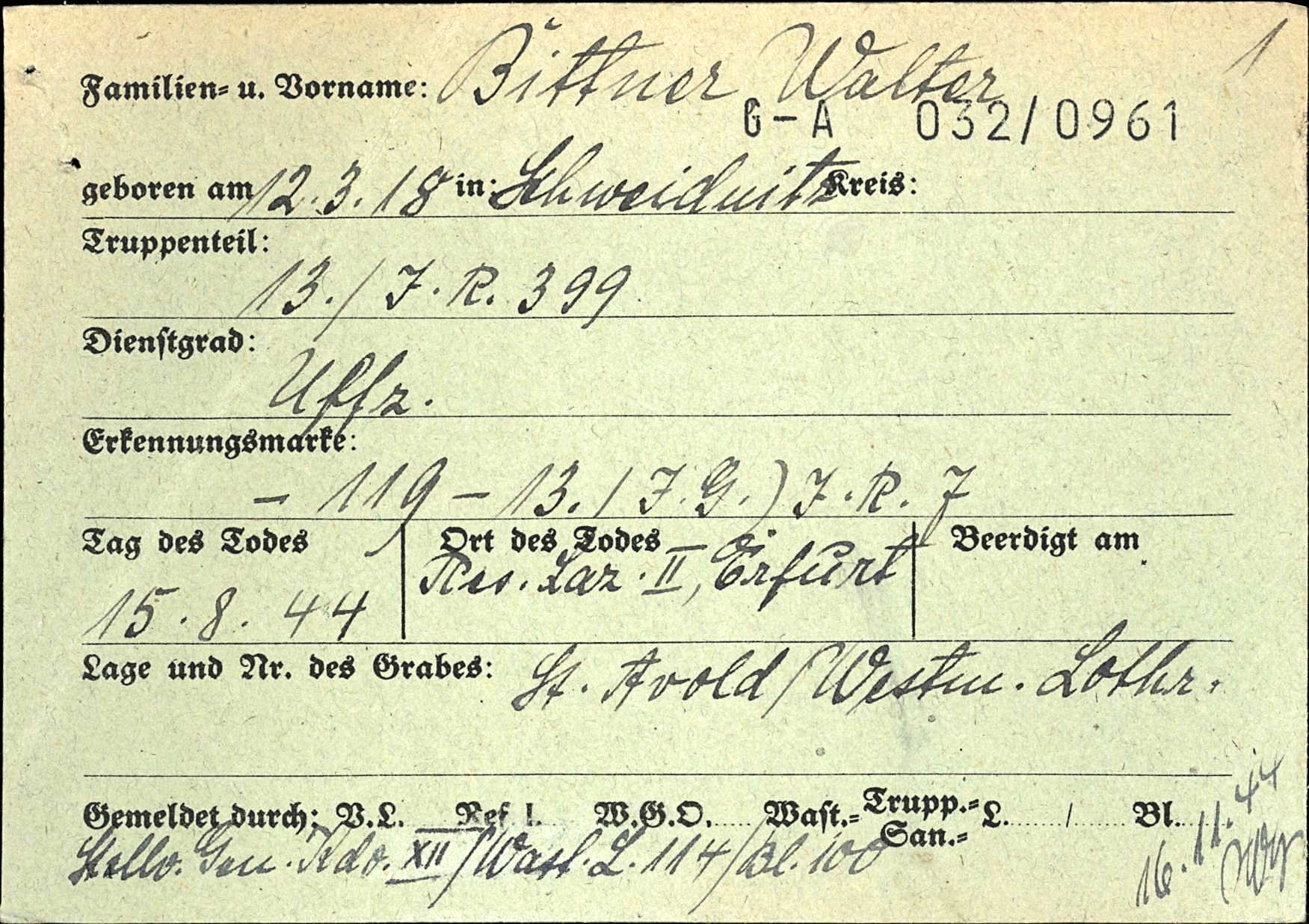Verstorben 12. August 1944 im Lazarett in Erfurt |