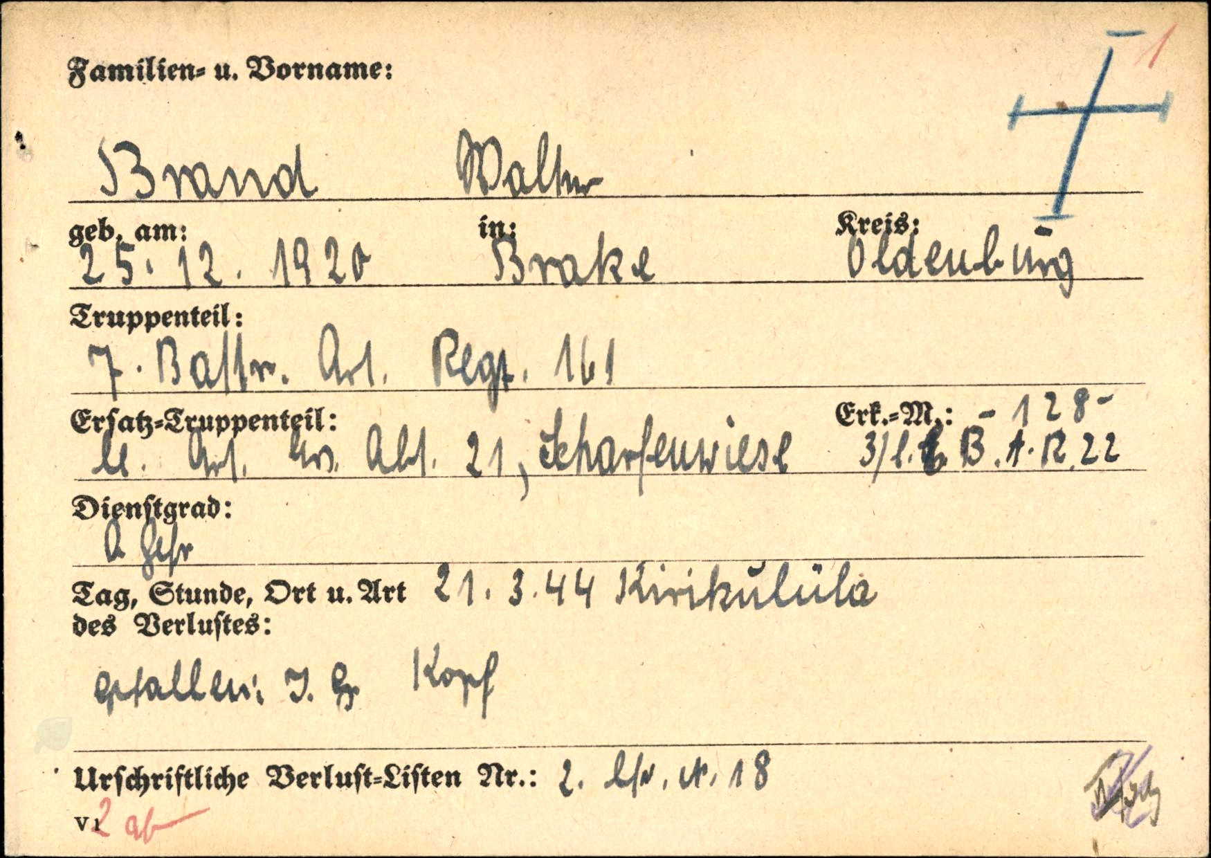Fundort der Inschrift:West-Kreuz, Spalte Rechts, Zeile 8 WALTER BRAND