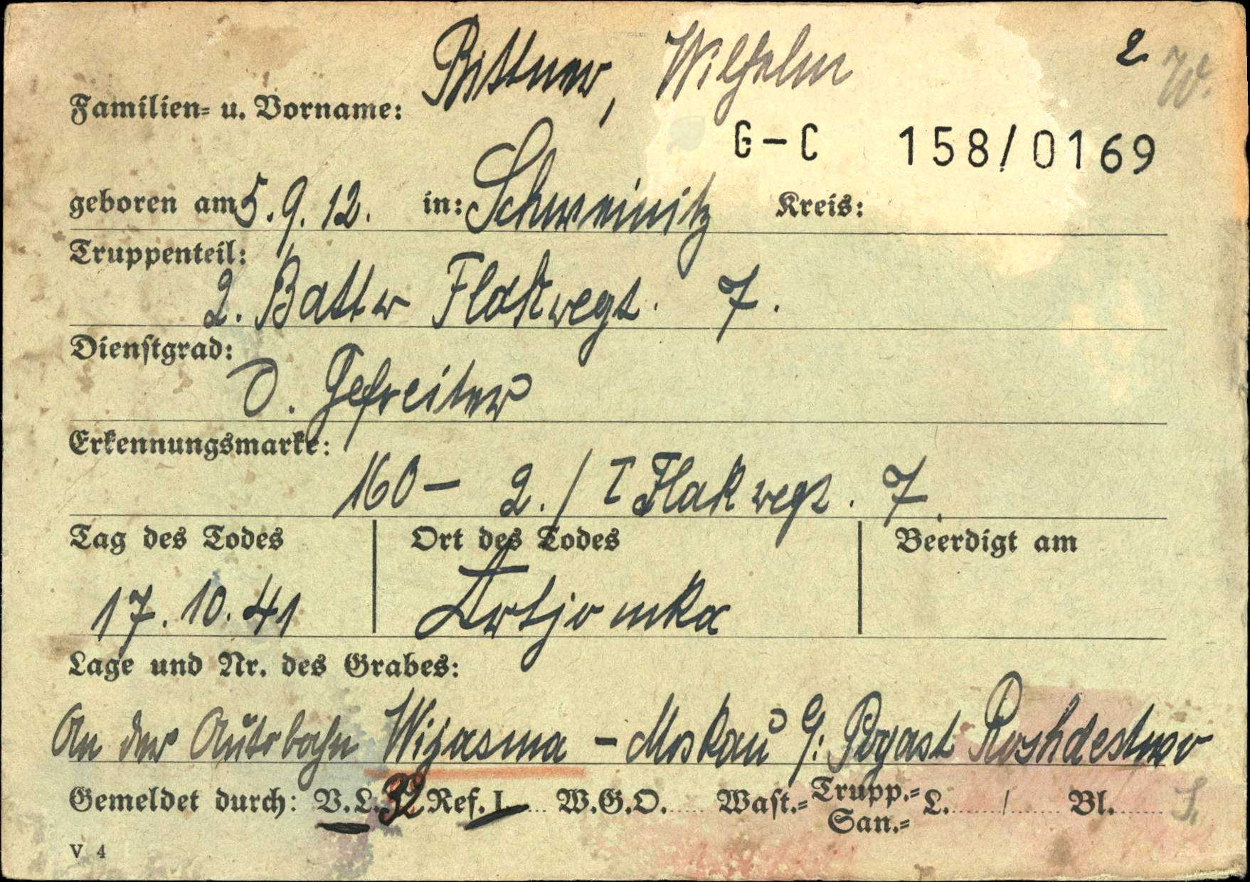 Auf der Verkustkarte ist als Ort des Todes "Artjomka" angegeben.