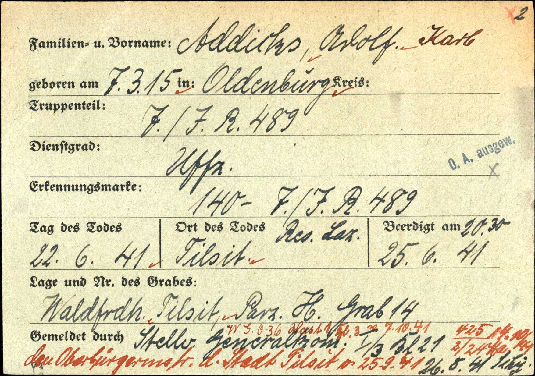 Gefallen am 22. Juni1941 in Tilsit (heute Sowetsk; Russland) |