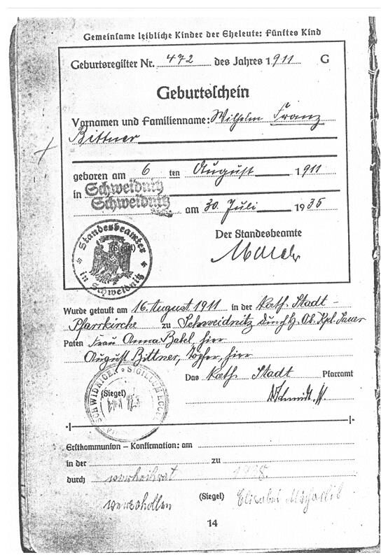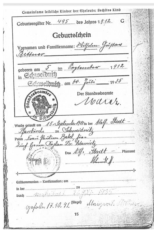 9. von 19 Kindern von Pauline (+1964) und Felix Bittner
