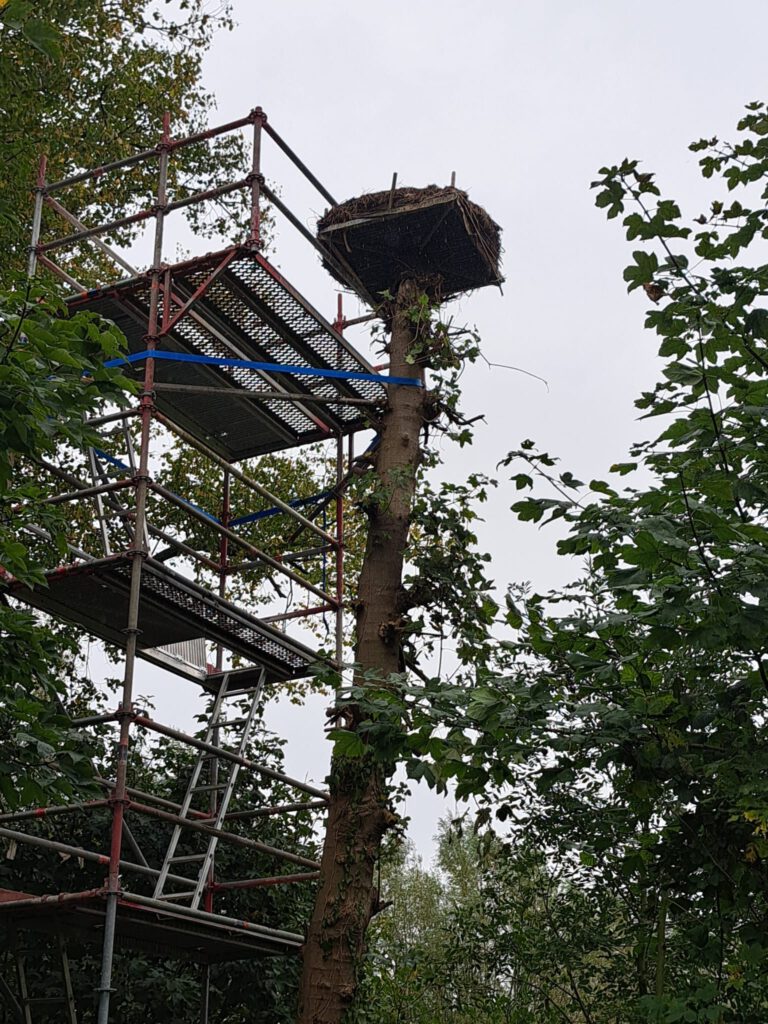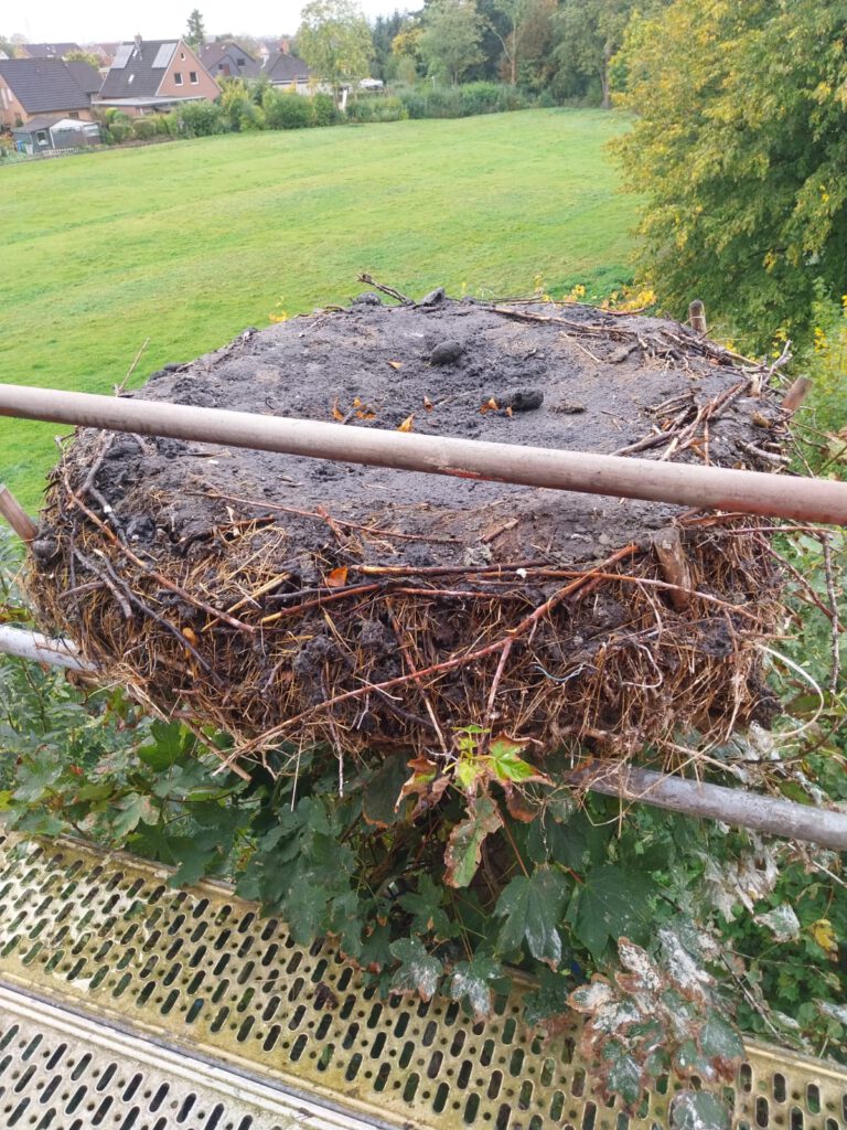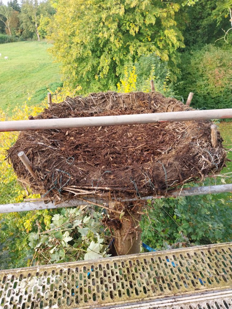 Und auch dieses Jahr gab es wieder einen Einsatz und das Storchennest wurde gereinigt. Warum dies notwendig ist, sieht man auf einem der Bilder.